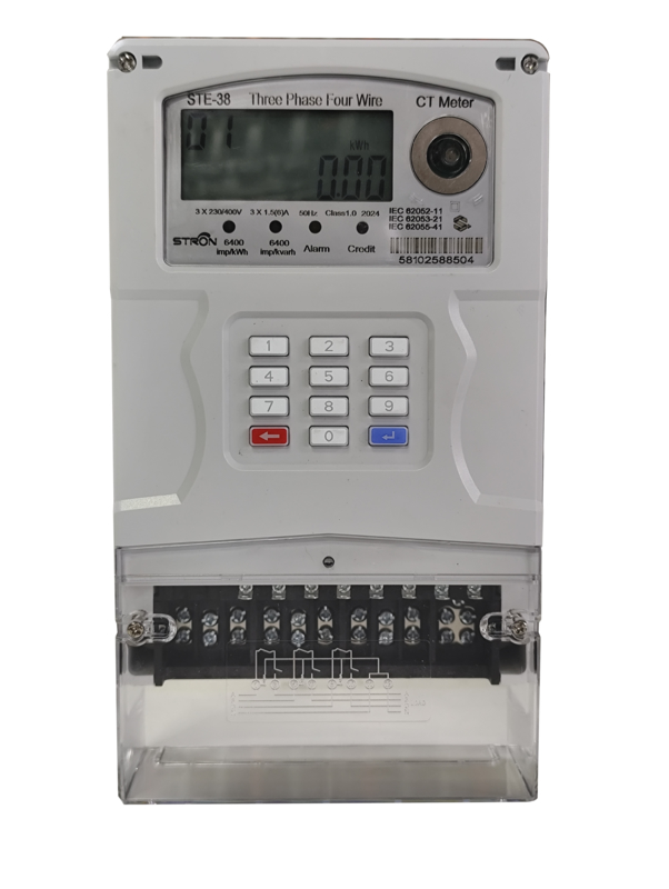 STE38-A, STS Standardına uygun, tuş takımı tipi, otomatik valf kontrollü ön ödemeli üç fazlı bir elektrik sayacıdır. Doğrudan Stronpay satış yazılımı ile yükleme yapılabilir ve LORA-RF modülü aracılığıyla AMI sistemi ile iletişim kurabilir.
